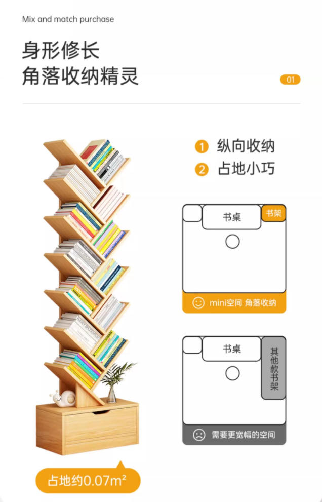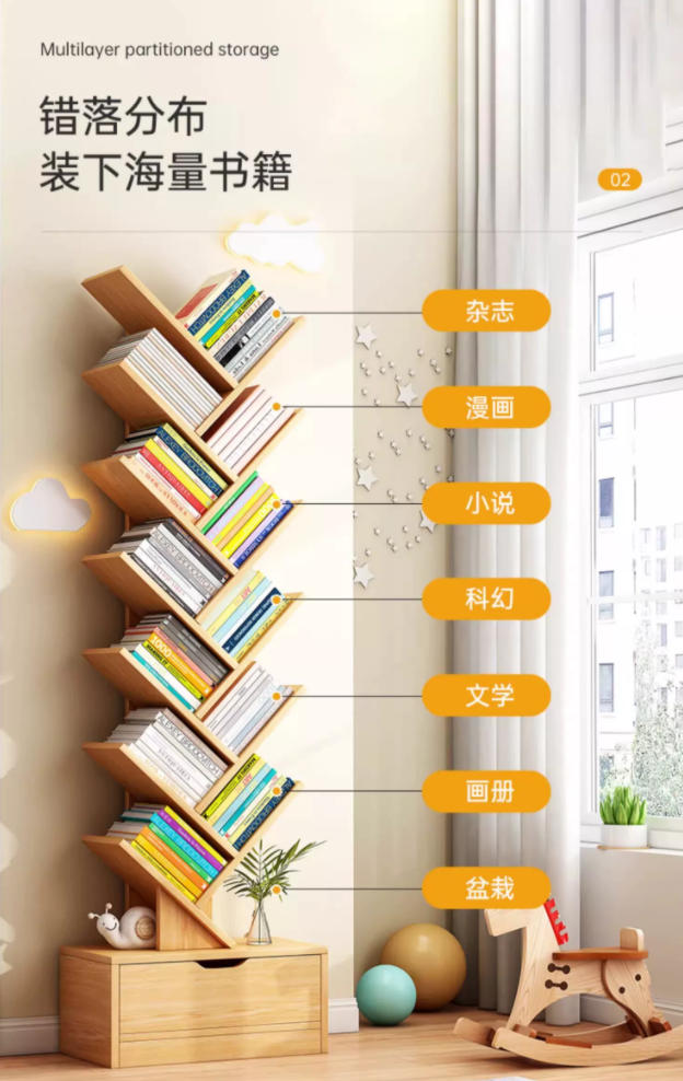 树形书架落地卧室置物架